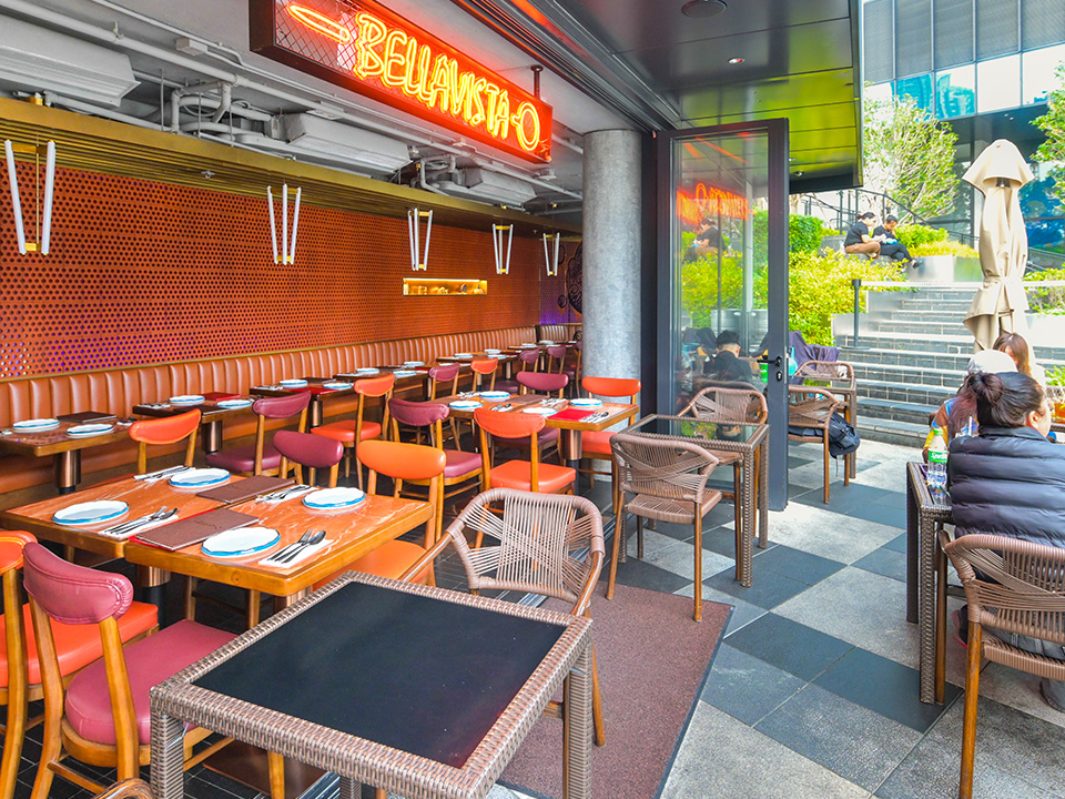 位于AIRSIDE六楼空中花园的Bellavista,可一边饱览醉人景致,一边细味一系列经典墨西哥、意大利及西式佳肴,包括炭烧牛排、披萨、汉堡、意粉、香辣墨西哥烤肉等,配上冰冻啤酒、经典鸡尾酒或创意无酒精饮品,倍添滋味。露天雅座不仅是宠物友善空间,在天朗气清的日子,更是欣赏日落美景的绝佳位置。