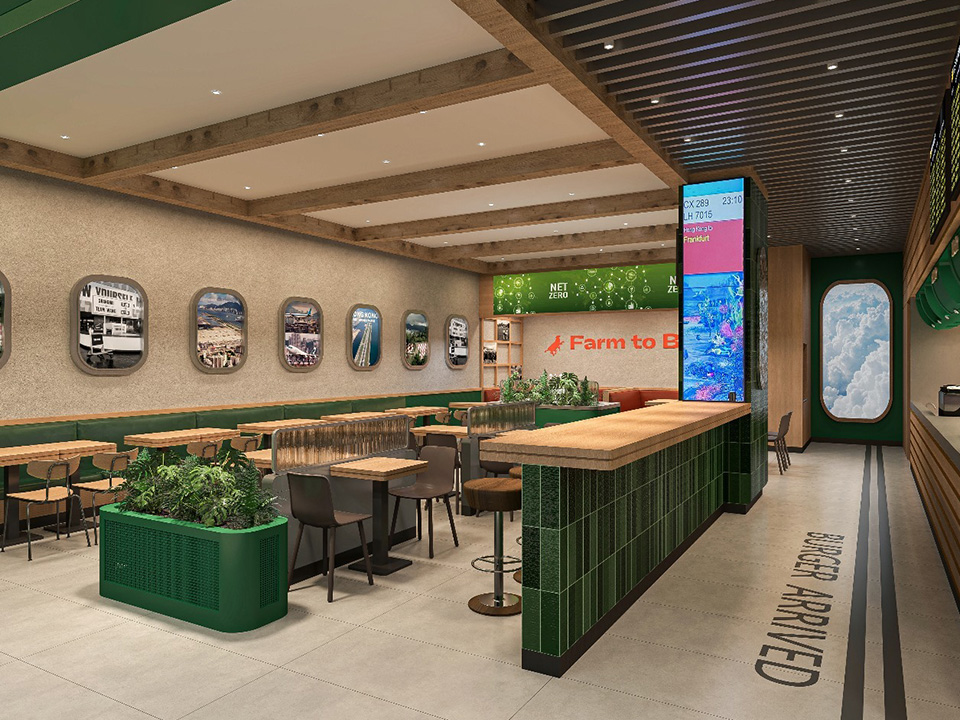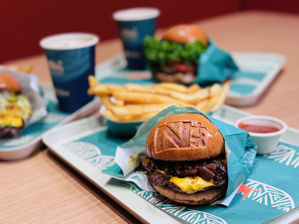 N+ Burger启德店以航空主题设计,细节尽显心思,巨型餐牌仿照航班信息牌设计,机舱窗户展示旧启德机场的图片,加上登机闸口显示屏的装饰,让人恍如置身天空之城。餐厅选用来自澳洲自家牧场饲养的顶级安格斯牛肉炮制出鲜嫩多汁的汉堡。另外更有多款创意人气汉堡,例如日式芥末酱牛前腩汉堡、特级松露酱牛前腩汉堡,以及香辣惹味的火焰烤鸡汉堡,款款美味可口。