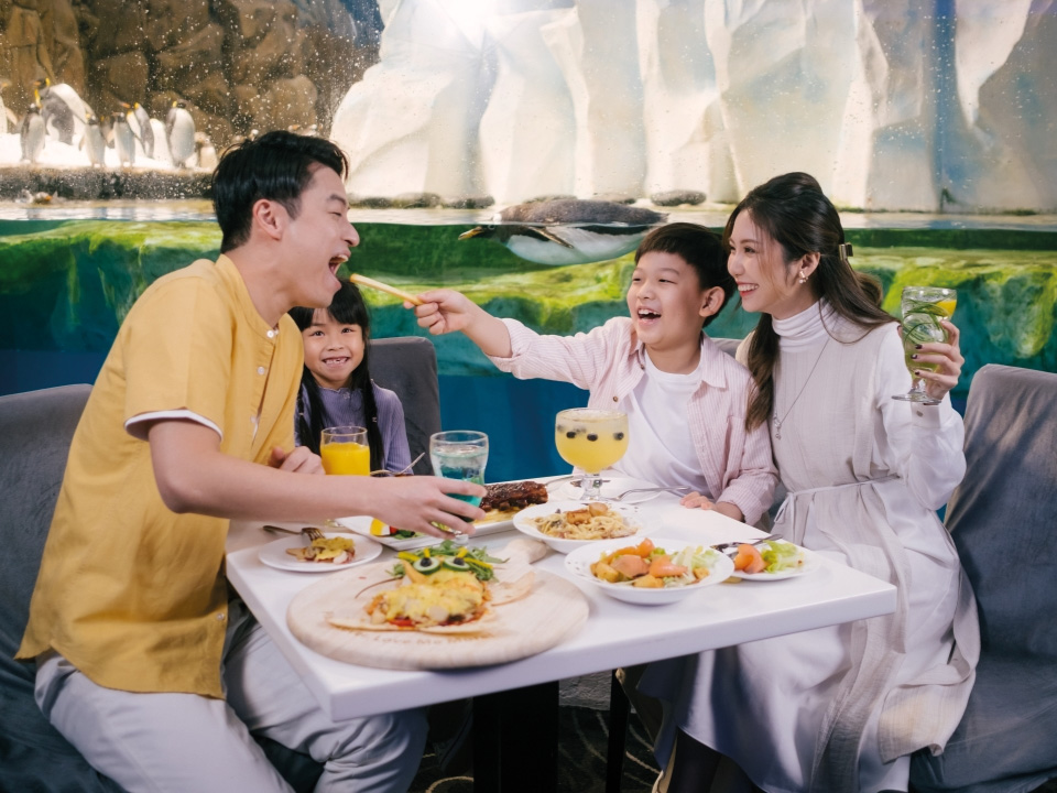 尽情玩乐过后,一定让你胃口大开!你可以到“海龙王餐厅”与海洋生物共进午餐,或到 “炉炭烧” 与 “冰极餐厅” 享用特色佳肴。想边走边吃传统的香港小吃,不妨到 “香港老大街” 和海滨区的摊位逛逛。别忘了到公园内各间礼品店逛逛,购买主题商品作纪念。