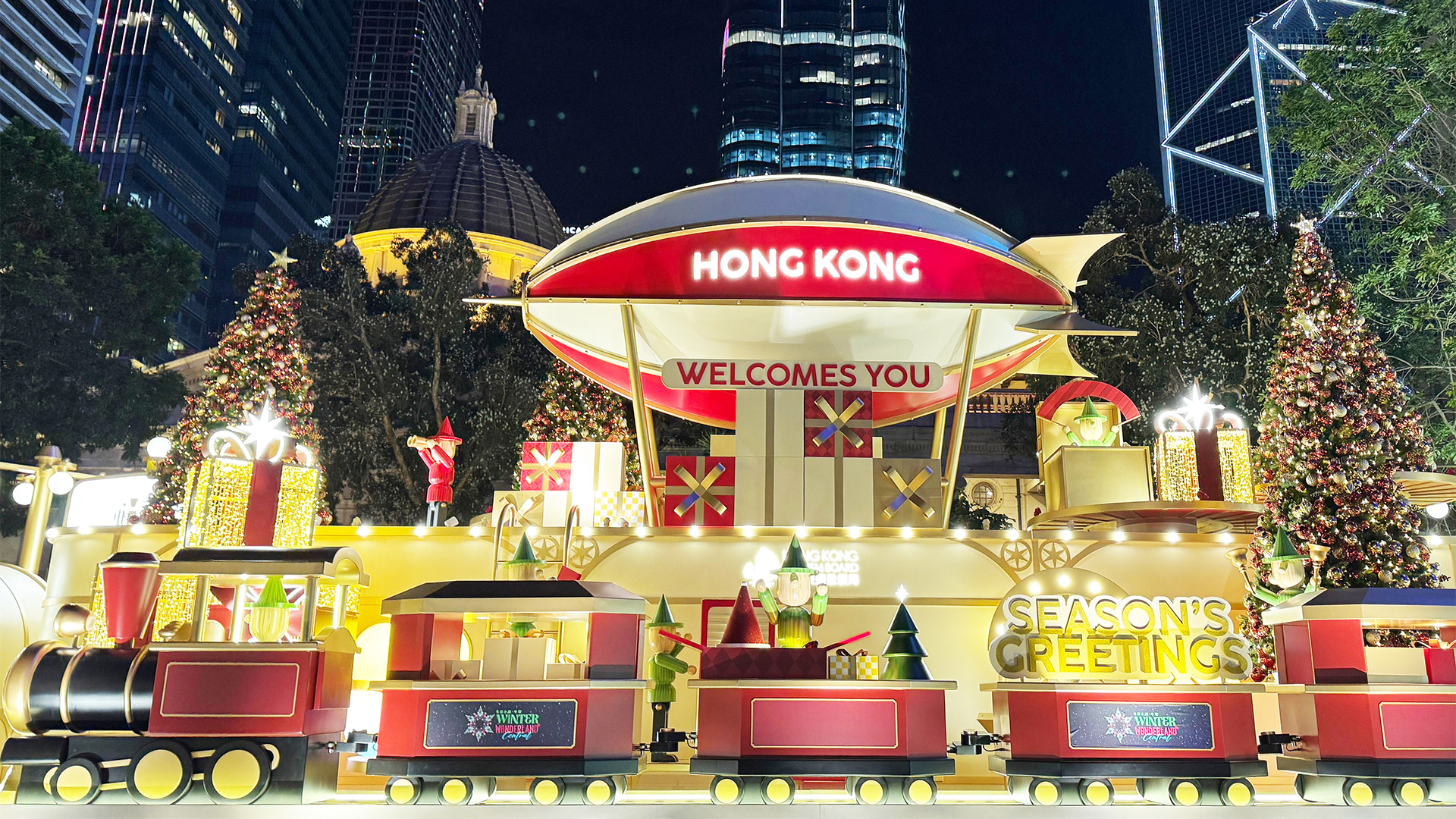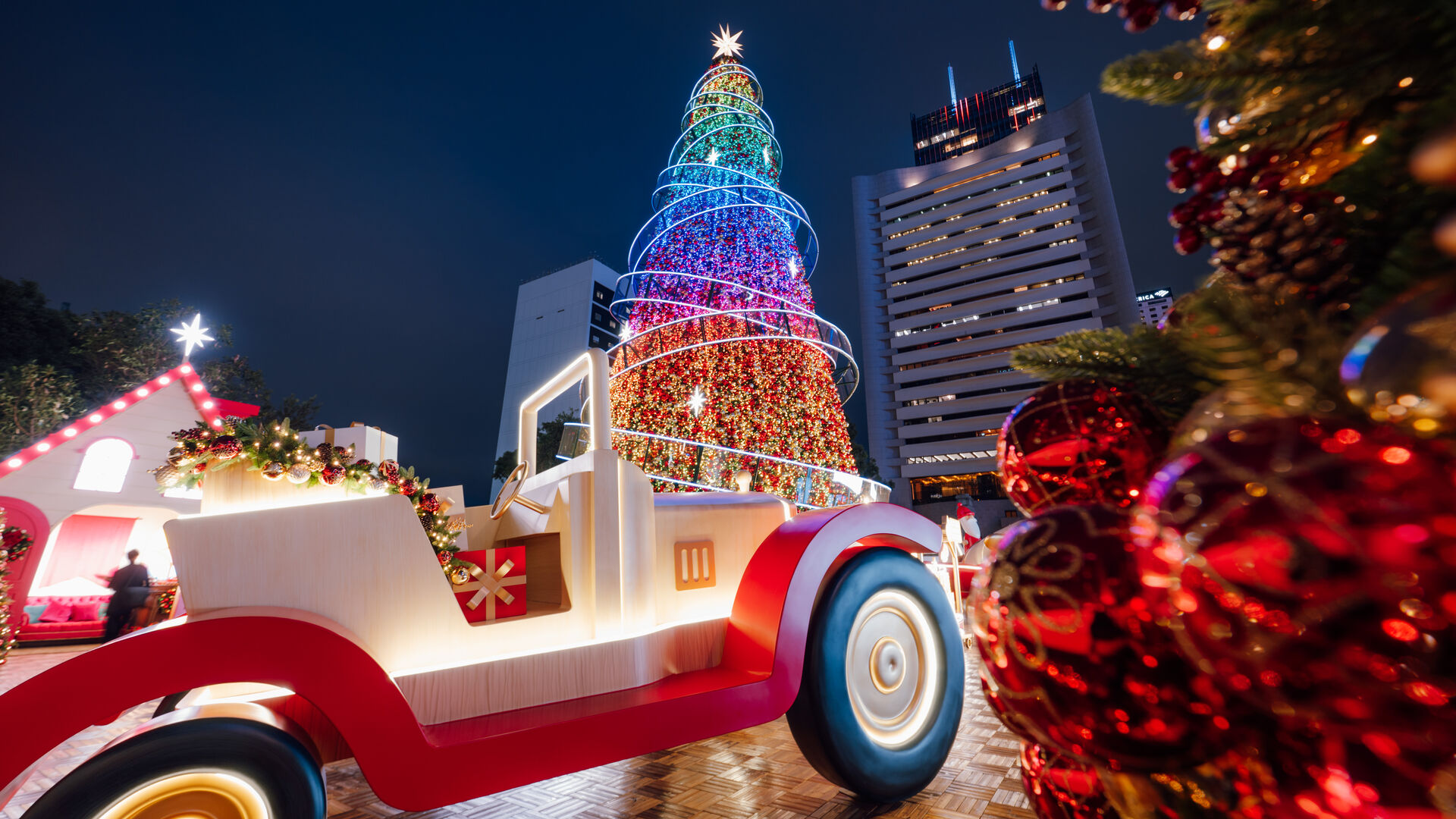 中环皇后像广场花园将化身成梦幻的圣诞天地,矗立20米高的巨型圣诞树,环绕闪耀的圣诞树装饰与玩具主题摆设,营造佳节气氛。