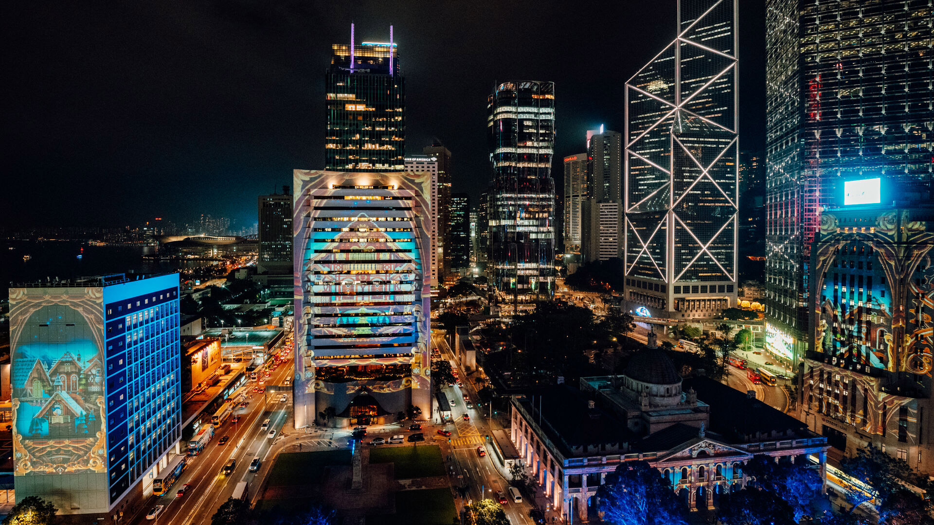 光影汇 · 中环将涵盖圣诞天地周边的八大地标建筑,透过精心设计的3D投影技术、灯光效果以配合节日音乐,将皇后像广场周边的建筑外墙,转变为一场绚丽的视觉盛宴,为你带来沉浸式的难忘体验!多彩的灯光随着音乐节奏翩翩起舞,将每一幢建筑都化作巨型光影画布,与圣诞天地的布置完美融合,让你仿佛置身于梦幻般的世界。